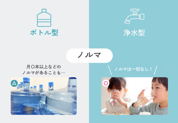 ボトル型ウォーターサーバーの場合は、「毎月〇本以上注文しなければならない」などのノルマがある場合がほとんどですが、浄水型ならノルマも一切ありません。お水が飲みきれないと悩む心配がなく、必要なときに必要な分だけ飲むことができますよ。