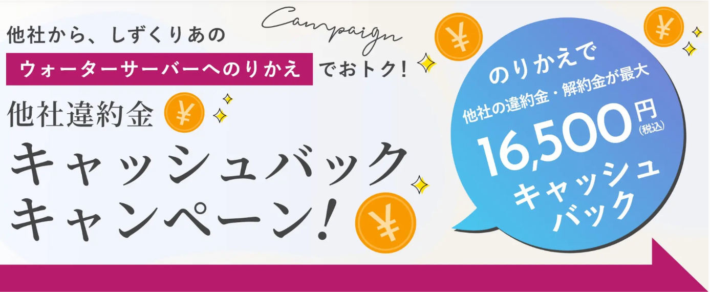 WEBからの申し込みで実質2ヶ月無料でウォーターサーバーが利用できます!さらに期間限定でお得なキャンペーンを行っていることも。詳しくは公式HPをチェックしてみてくださいね。